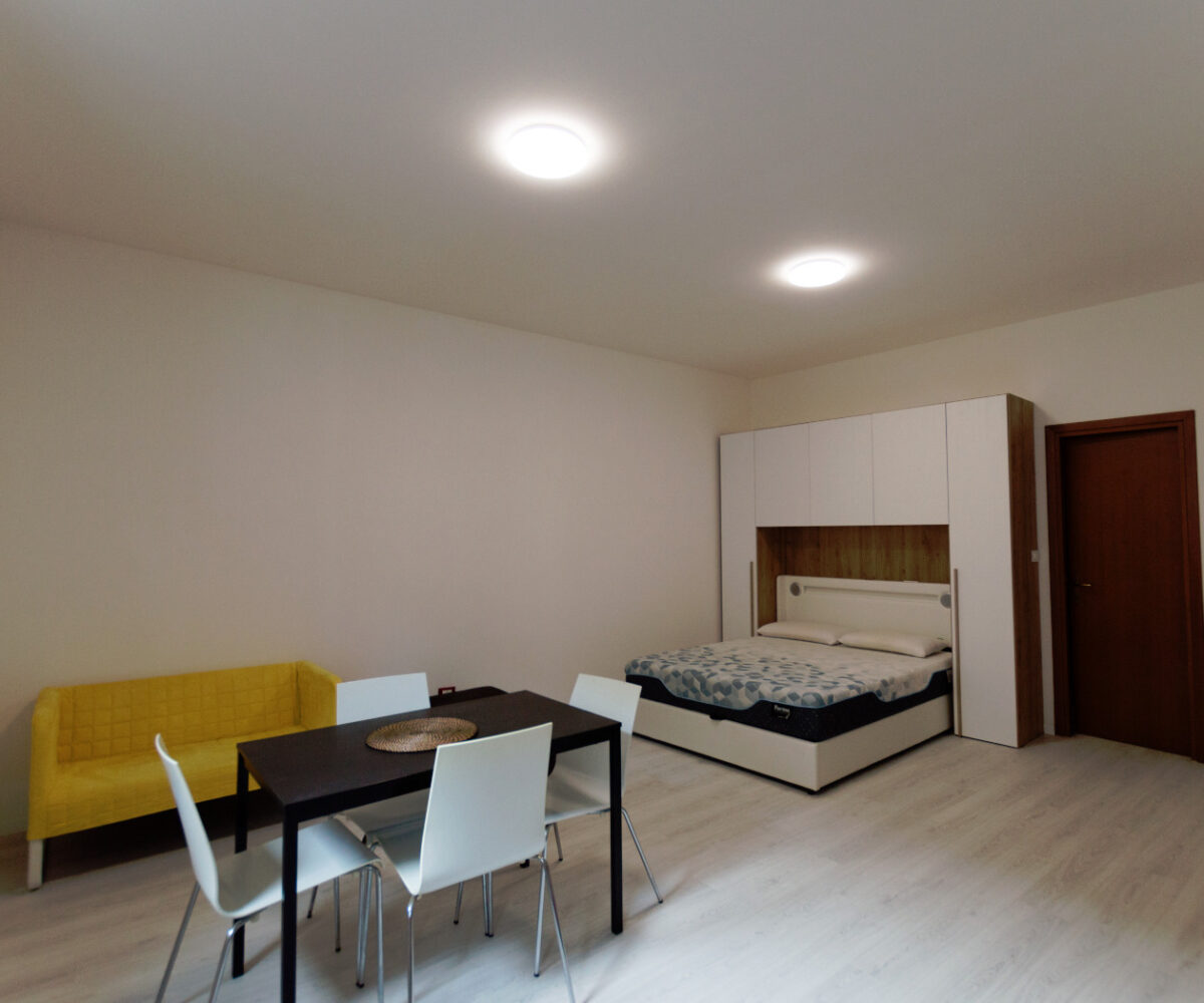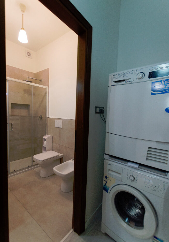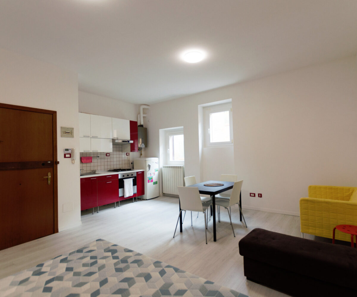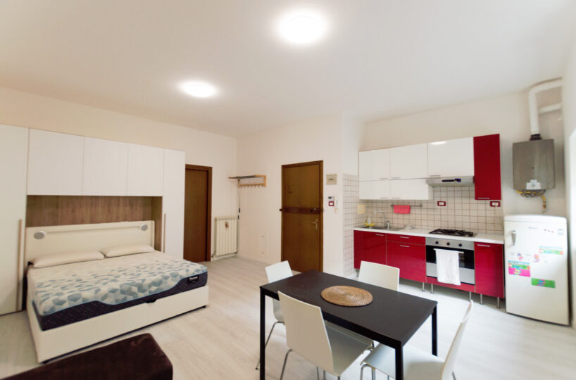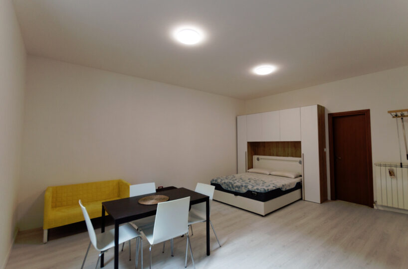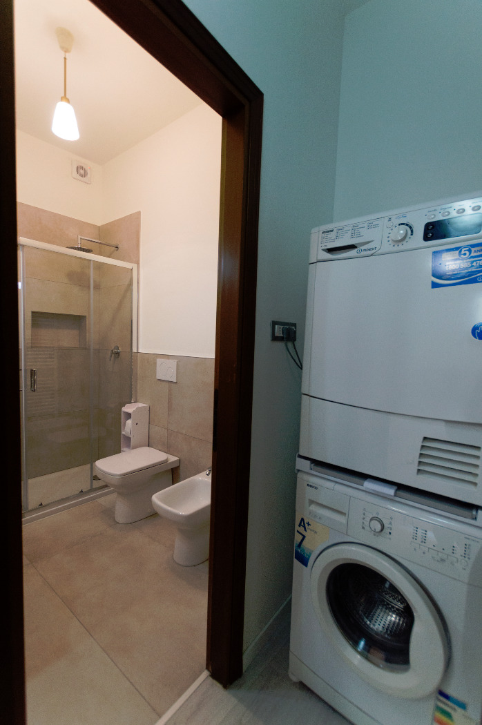 L’appartamento viene consegnato arredato con cucina completa, tavolo, divano, letto matrimoniale, lavatrice e asciugatrice. www.living-in.it La Tua agenzia immobiliare. Le presenti informazioni non costituiscono elemento contrattuale.