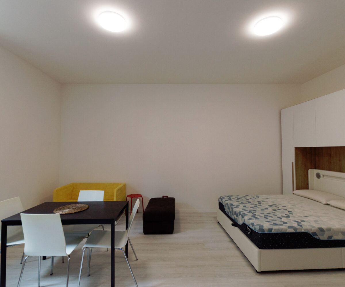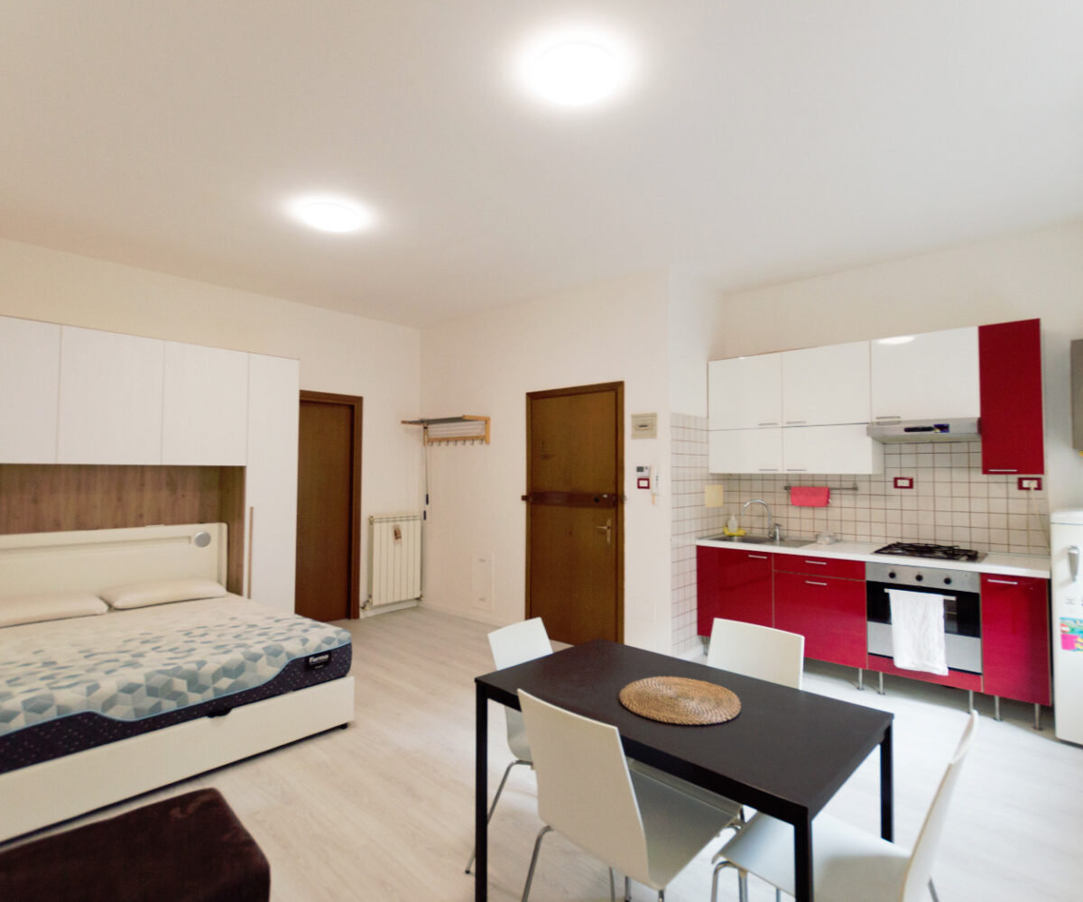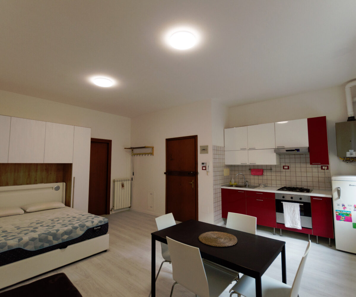 L’appartamento viene consegnato arredato con cucina completa, tavolo, divano, letto matrimoniale, lavatrice e asciugatrice. www.living-in.it La Tua agenzia immobiliare. Le presenti informazioni non costituiscono elemento contrattuale.